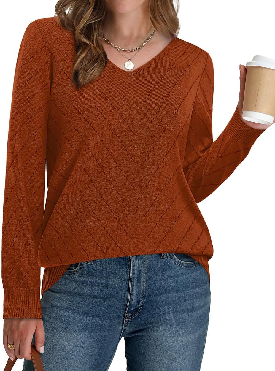 WIHOLL Sweaters for Women V Neck Casual Knit Long Sleeve Tops Lightweight Pullover Clothes Fall Fashion Outfits 2025